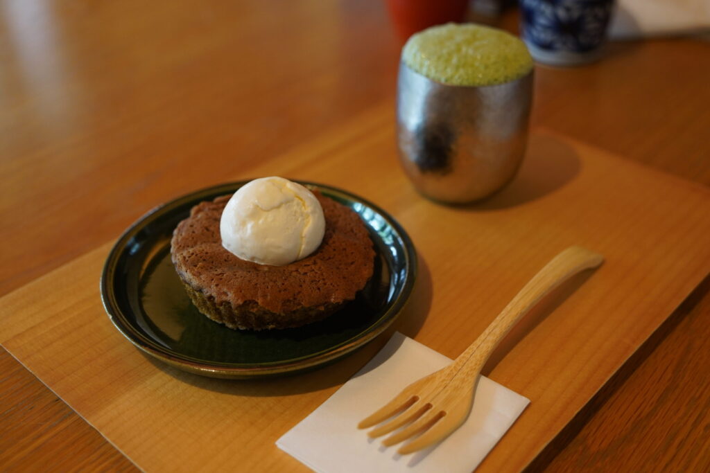 濃茶ラテは、抹茶のほどよい苦味と香ばしさがしっかり感じられつつ、ミルクの甘みがまろやかに包み込んでくれる味わい。甘すぎず、すっきりと飲めて満足感のある一杯でした。
