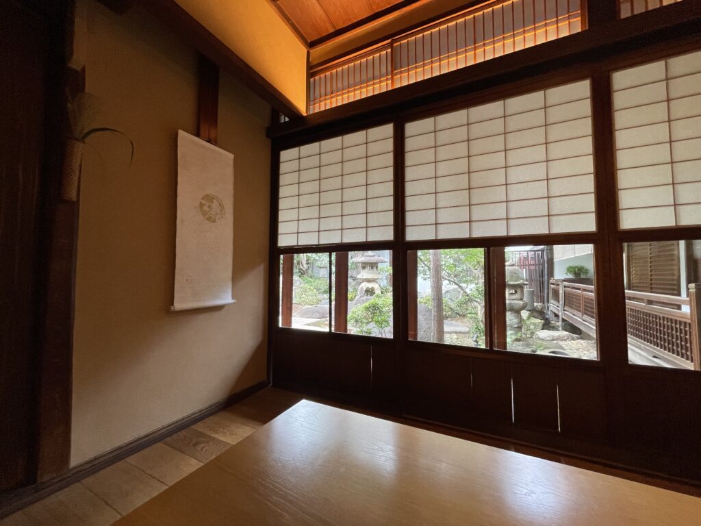 お庭を眺めながら、静かに味わう一服。子連れ旅の締めくくりにぴったりの癒し時間でした。