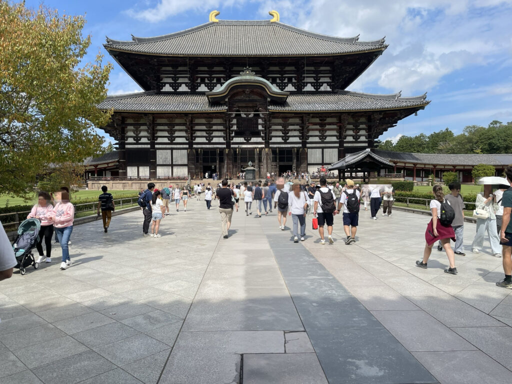 食後は東大寺へ。奈良公園からもすぐの距離で、緑の中を歩きながら向かいます。